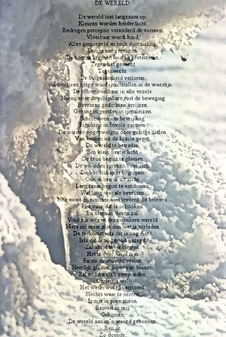De knallen verstommen.Gesmoord in een wollige deken die nu de wereld omhult.De diepe duisternis heeft plaatsgemaakt voor een nog duisterder licht.De dampende nevel die alles verhult.Het zicht is beperkt tot nul en nog minder.Ik loop te dwalen in een wereld die ik niet meer ken.Niets is gebleven van wat ik herken.De mist smoort alle geluiden en ook nog het licht.Ik ben stuurloos en voel me reddeloos verloren.Ben al m’n oriëntatie verloren.Het grijpt me bij de strot.Waar is de wereld gebleven die ik eens heb gekend?Stemmen die klinken vanuit de grijzige wolken.Een flits van een schim die ik niet herken.De woorden versmoren in vochtige dampen.Geli….ig…nw..rrr.Maar ik weet niet eens meer wat is achter of voren.M’n denken is tijdelijk gestopt.De nevelen vermengt met kruitdampen benemen me de lucht.M’n diepste angsten zien kansen.M’n gedachten zijn vernauwt.Ik loop slechts te dwalen en weet niet waarheen.Hoe moet ik nu verder of is dit nu het einde.Voel me een blinde en ook nog eens doof.Vanuit het niets gesmoorde knallen.Een donder die de zinnen verdooft.Het einde van de wereld lijkt zo nabij.Daar om de hoek die ik niet kan vinden.Vindt ze mij.Dan kan ik nog niet voelen.Overstemd door die angst.M’n adem afgeknepen.Is dit nu het einde?Hier ben ik toch nog niet aan toe.Ik moet en zal verder de nacht tegemoet.De nieuwe dag zal toch wel eens ontwaken.Me vinden verloren in m’n dwalen.M’n hervonden kracht.Geeft rust aan m’n vertroebelde geest.Het einde voorbij ben ik toch nog steeds op weg naar een nieuw begin.Wetend dat dat nooit zal komen, want wat geweest is gaat nimmer meer weg.Niet echt.Het verleden dat zal ik mee moeten dragen zolang als ik leef en verder tot het eind van de weg.De weg die steeds weer verder wordt verlegt.Die toekomst die lijkt soms zo duister maar is licht vergeleken bij dit soort mist.Er komt nooit geen einde, alleen een vervolg.Er is niets verloren.Iets wordt slechts vermist.Niemand is echt verdwenen.Ze worden slechts gemist.De weg is naar voren.Er is geen terug.De weg is lang maar toch slechts een enkele stap, steeds opnieuw weer gezet.Zo loop ik te dolen veloren in mist.Zo loop ik te zoeken in mistige werelden verholen in m’n geest.Zo gaat weer verloren een droom.Ben ik degene op zoek in de mist.Zoek ik degene die ik al die tijd het meest heb gemist.Ben ik op zoek naar mezelf.Vergeten dat je niet hoeft te zoeken naar wat nooit is verloren.Ben ik degene op weg.Met mezelf als enige bagage in deze onpeilbare wereld.Ben ik op zoek naar die ander.Kijk ik dan naar de weg of naar de bagage?M’n reis duurt maar een uur in de nacht.Maar heb toch even het gevoel de eeuwigheid te hebben gevonden.Die uren die staan nu voor altijd in m’n geheugen gegrift.Zijn deel geworden en zullen ooit weer eens losgelaten worden.Maar voorlopig beleef ik elke seconde.Ik klim tot boven de mist uit.Bereik een bekende, een helpende hand.Voor even ben ik weer veilig.Tot ik m’n weg weer vervolg.Hoop dan dat de mist is verdwenen.Vergeefs zoals later zal blijken.Hardnekkig is toch die mist in de nacht.M’n gang is huiswaarts te keren en om tot mezelf weer te komen.Te vinden de rust.Te krijgen de kracht.Om de weg weer te kunnen vervolgen.Een oud jaar ligt achter ons, het nieuwe voor.Wat zal het gaan brengen?Ik wacht wel en zal volgend oud en nieuw weer opnieuw een nieuw jaar beginnen.Maar heb er voor nu en heel even genoeg van gehad.Nog één keer dan de beste wensen.Ja, dat jaar komt wel goed, dat weet ik zeker.Zeker na zulk een zware nacht.De mist zonder schade overwonnen.Als de mist en de kruitdampen morgen op zijn getrokken eindelijk een nieuw begin.Een begin dat niet meer is dat slechts het vervolg……Gr. RuudLees meer >> | 173 keer bekeken